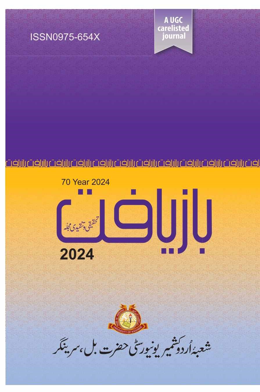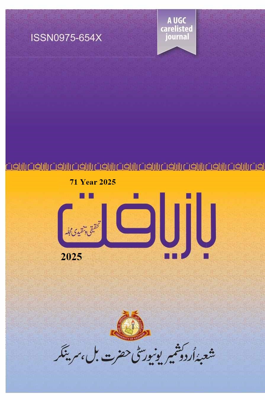 Bazyaft: A Refereed Journal in Urdu Language and Literature is a peer reviewed and refereed journal that enjoys the support of a learned and professional Advisory Board. It is an annual publication with an ISSN 975-654X. Bazyaft is one of the oldest journals published from the University of Kashmir that has been published for the last 25 years. It invites research papers, critical and analytical pieces about various genres of Urdu literature once in year usually in the month of september