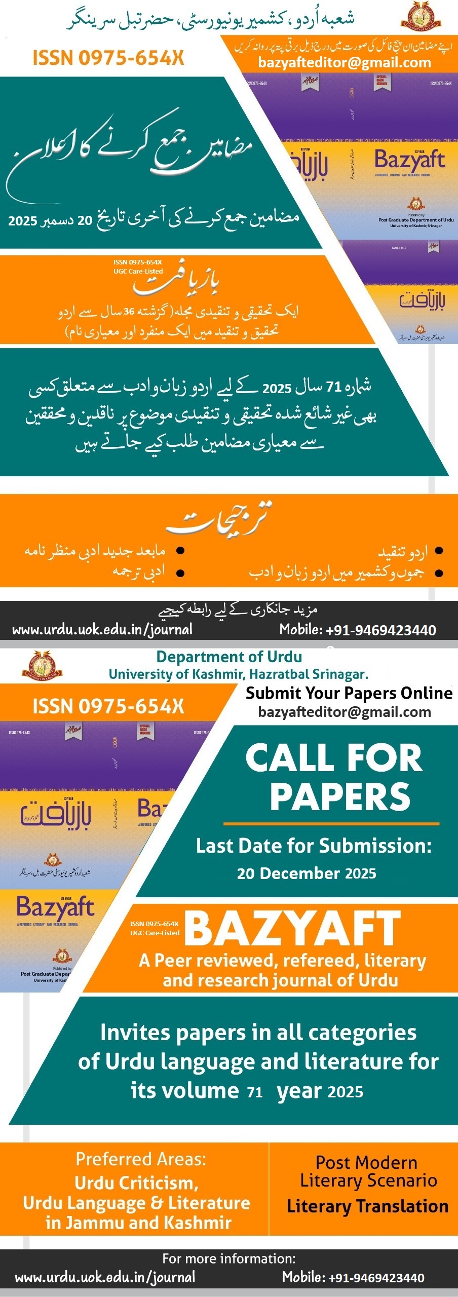 Call for Papers for Seminar " A Socio-Historic and Linguistic Perspective of Urdu News Media in Jammu and Kashmir -جموں و کشمیر میں اردو صحافت:سماجی، تاریخی اور لسانی تناظر میں